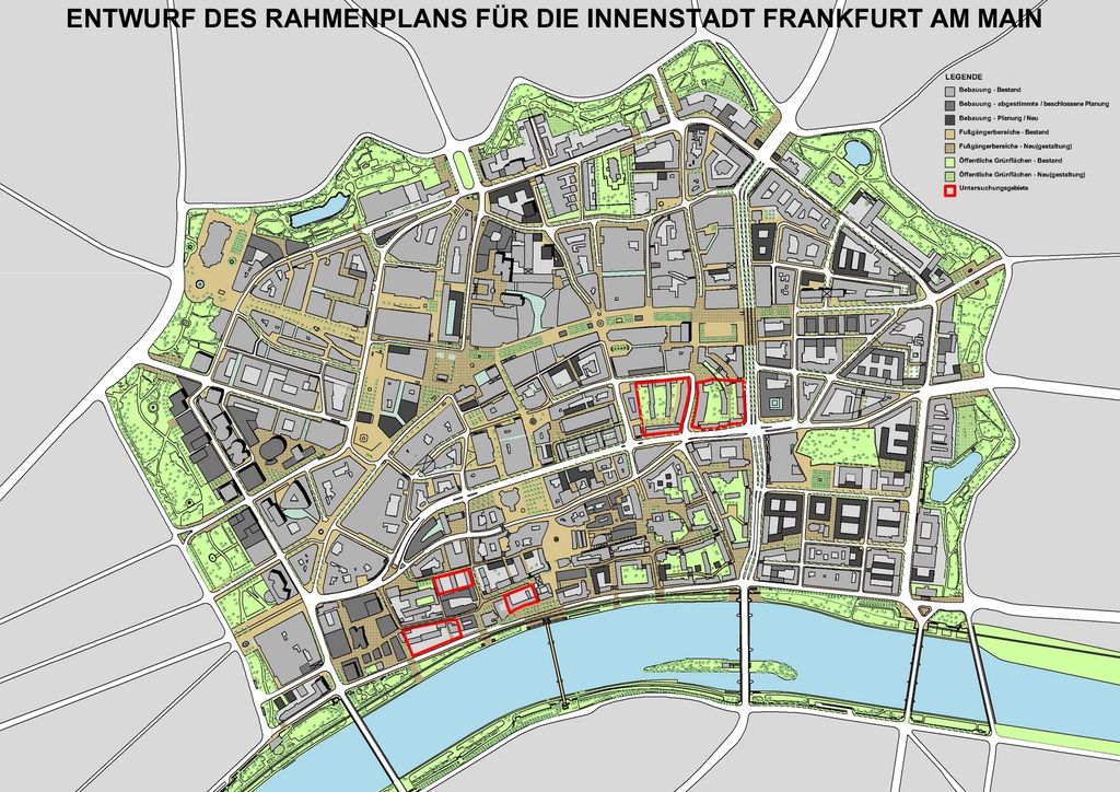 Der Entwurf eines Rahmenplans für die Innenstadt war zusammen mit dem Stadtplanungsamt umzusetzen. Das Konzept umfasste die Themenbereiche Wohnen, Büros, Freizeit, Einkaufen, öffentliche Einrichtungen sowie Frei- und Grünflächen innerhalb des Wallanlagenringes.