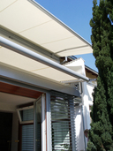 Auf der Gartenseite wurde der Wohnraum mit einem verglasten Vorbau vergrößert.