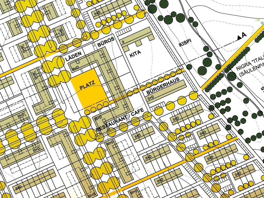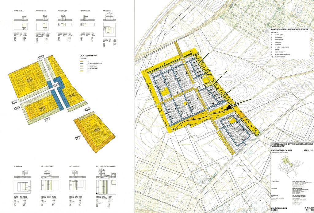 Acht ausgewählte Büros sollten in einem städtebaulichen Entwurfsverfahren einen im Stadtplanungsamt entwickelten Rahmenplan für den neuen Stadtteil auf seine Spielräume für eine unterschiedliche Quartiersentwicklung ausloten. Vorzuschlagen waren vertiefende Bebauungsplan-Festsetzungen. Die Untersuchung umfasste drei von zehn Quartieren mit differenzierten Siedlungsrändern, unterschiedlicher baulicher Dichte und Typologie, allen privaten und öffentlichen Erschließungsflächen bis hin zu einer Entwässerungskonzeption und einer Gestaltung der Landschaft.