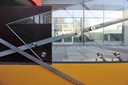Expressiv in Gestalt und Farbgebung sowie reduziert in Materialität und Ausdetaillierung positionieren sich die Baukörper selbstbewusst in einem eher graufarben gehaltenen Platzraum.