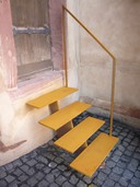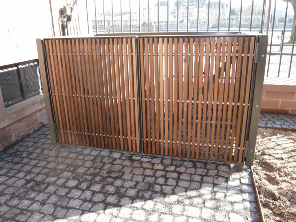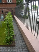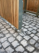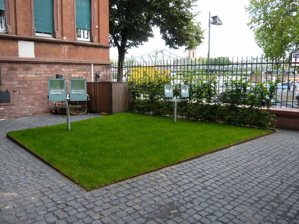 Weitere Einbauten sind eine Treppe aus Cortenstahl zum spätromanischen Südturm und eine mit Rüster verkleidete Müllstation am Mainkai."
